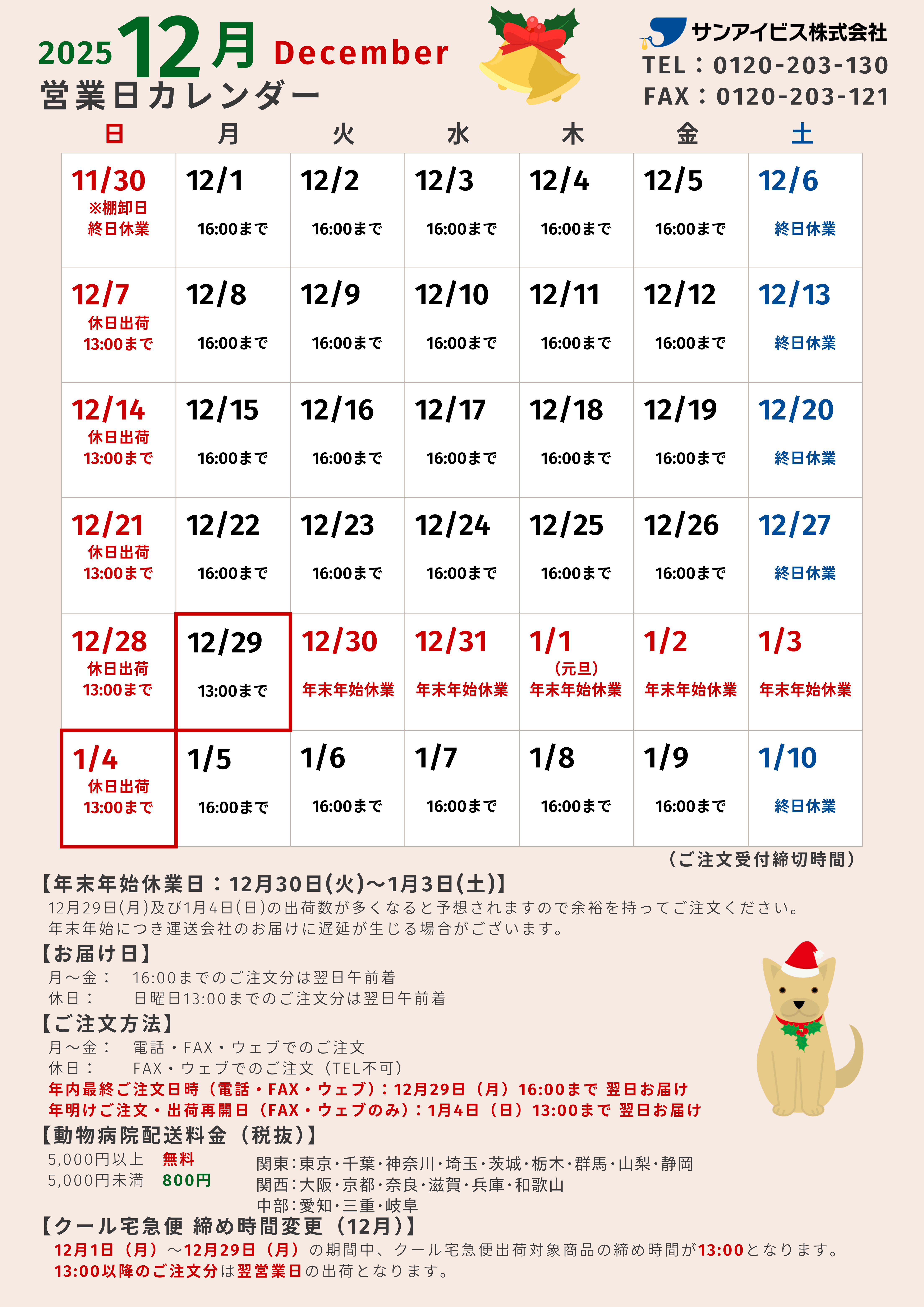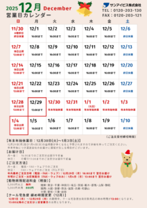 サンアイビス営業日カレンダー(202512)